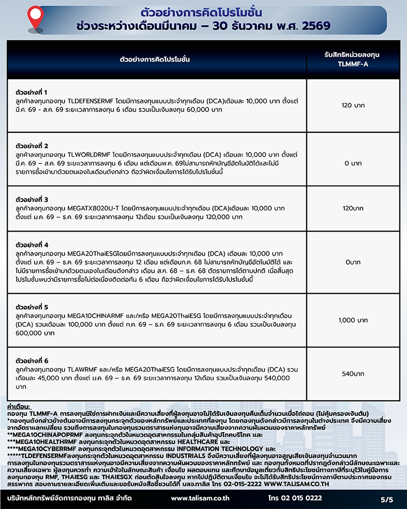 สิทธิพิเศษ DCA กองทุนลดหย่อนภาษีกับบลจ.ทาลิสประจำปี 2569